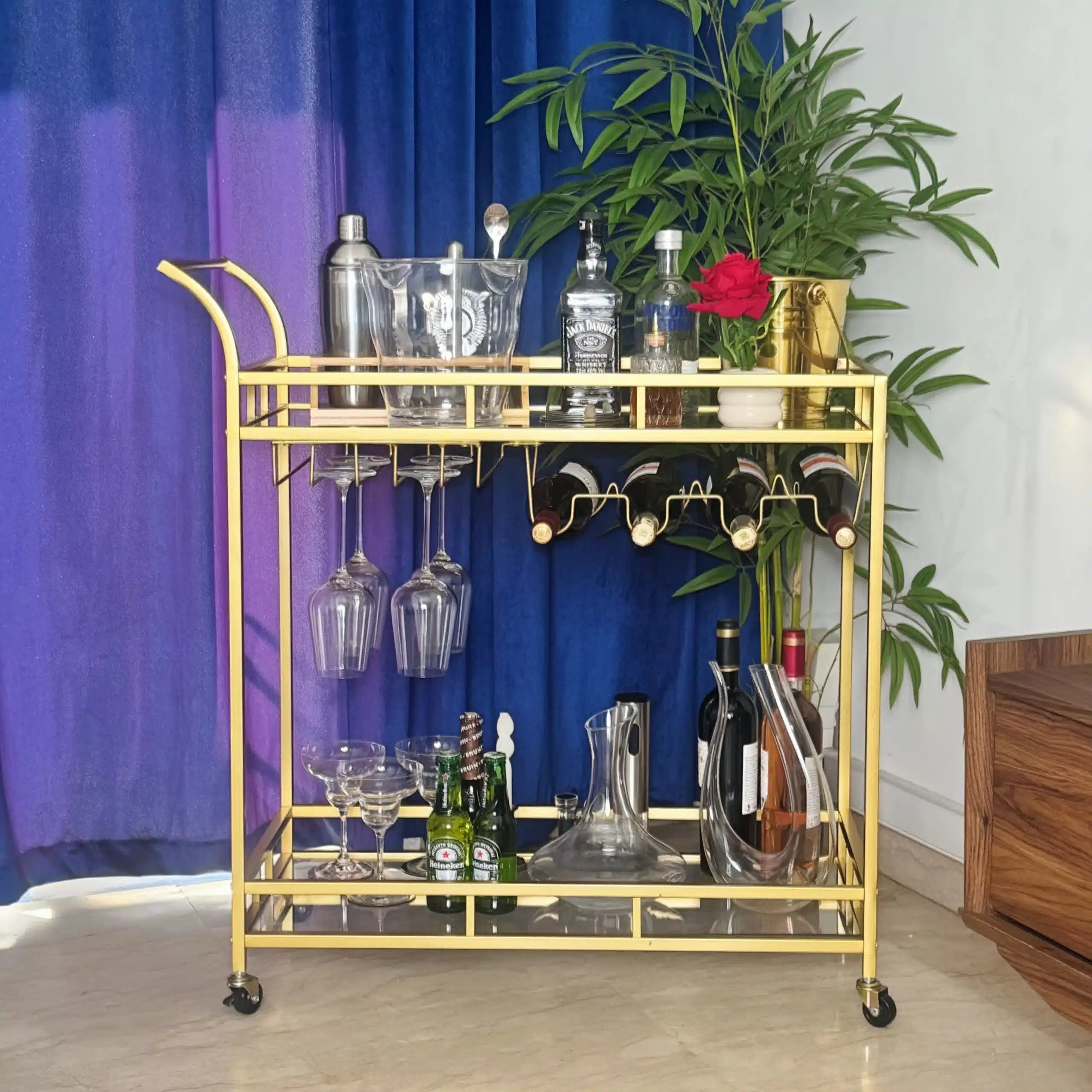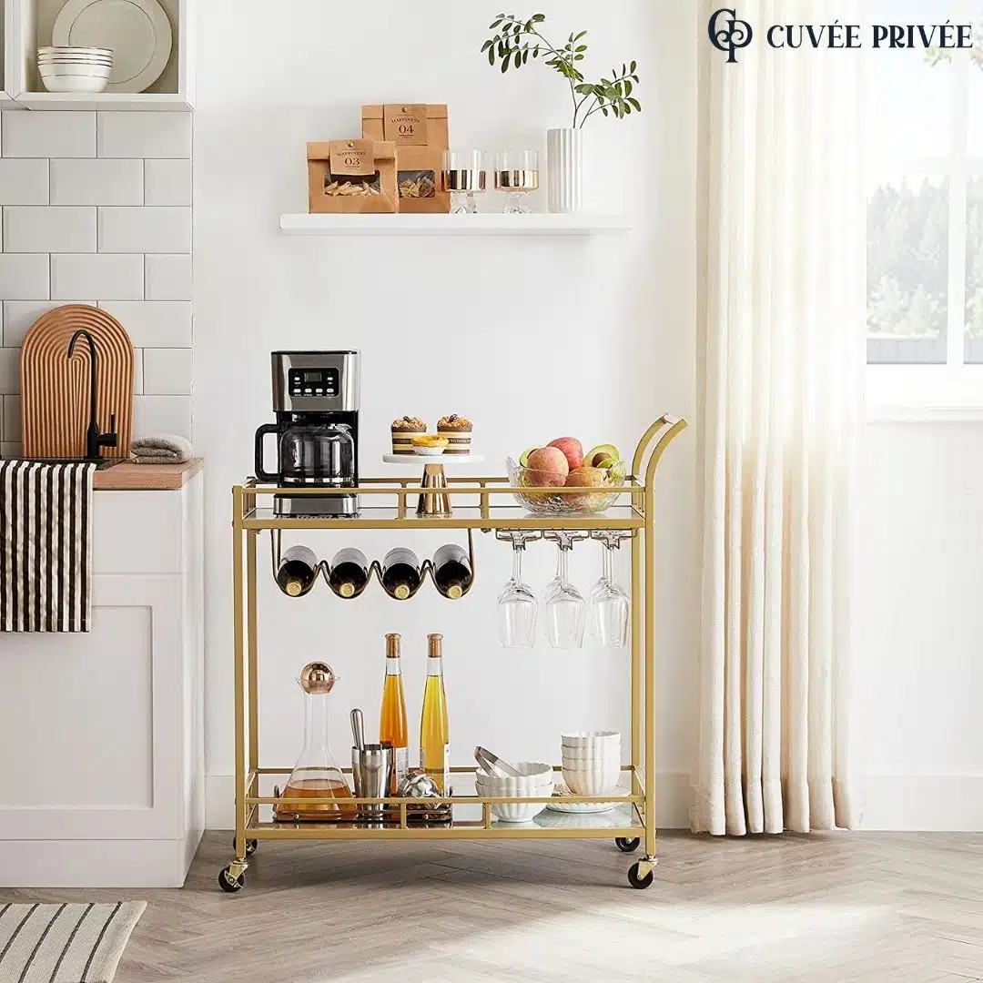 Transformez votre espace en véritable bar à domicile avec ce chariot bar doré au design élégant.