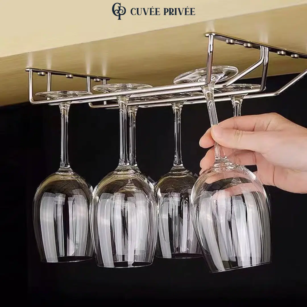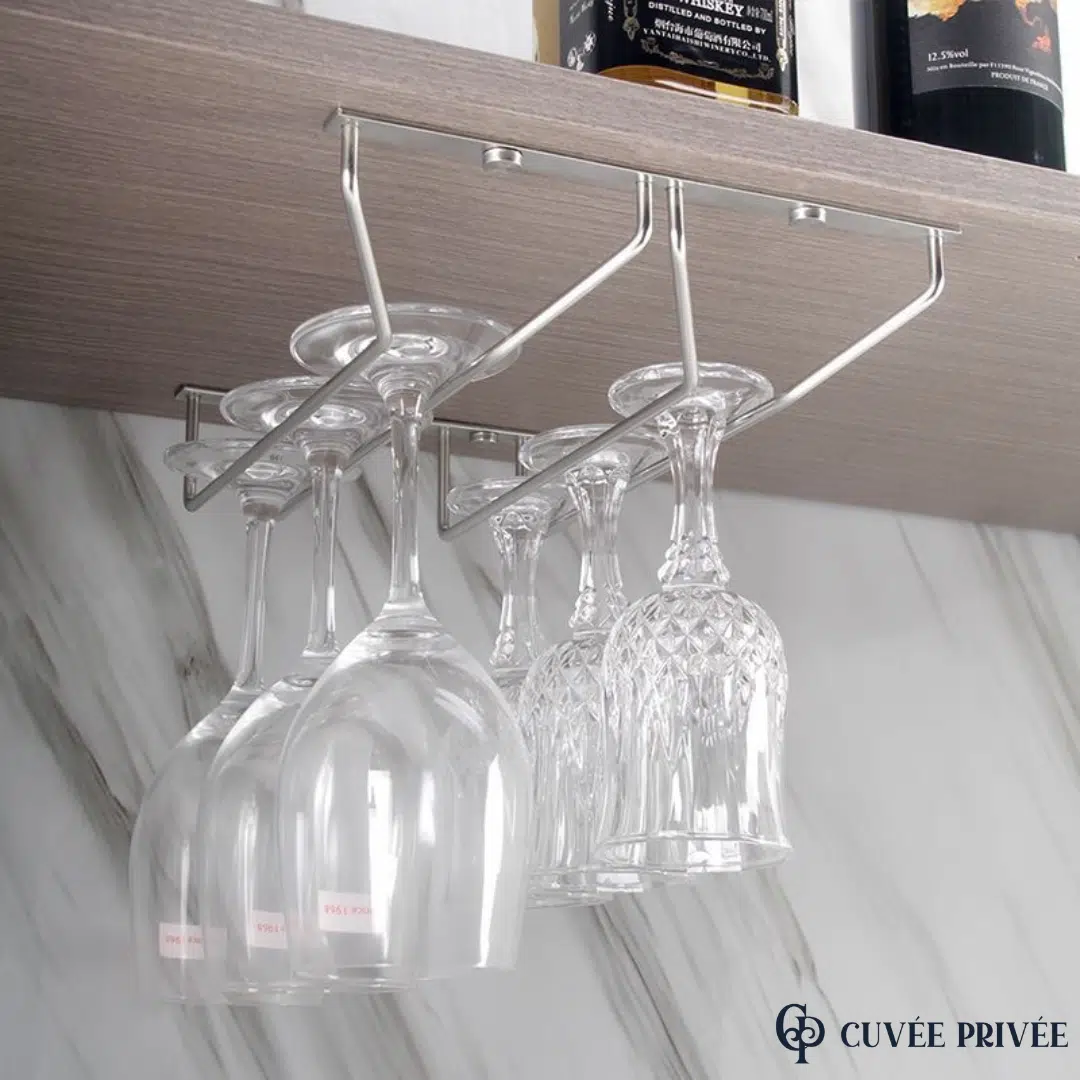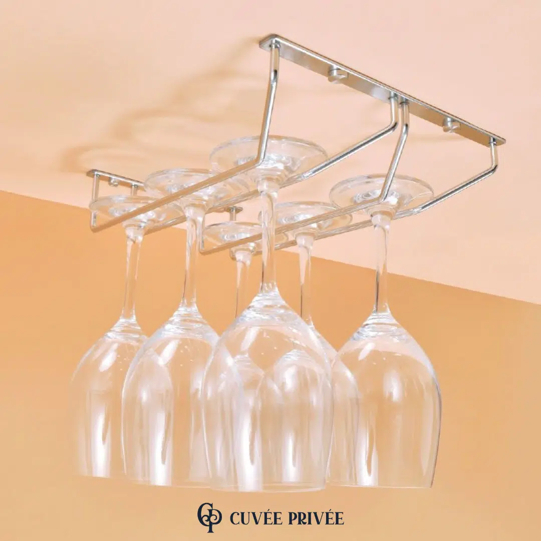 Porte-Verres Suspendu Double Rangée – Installation Murale ou Plafond