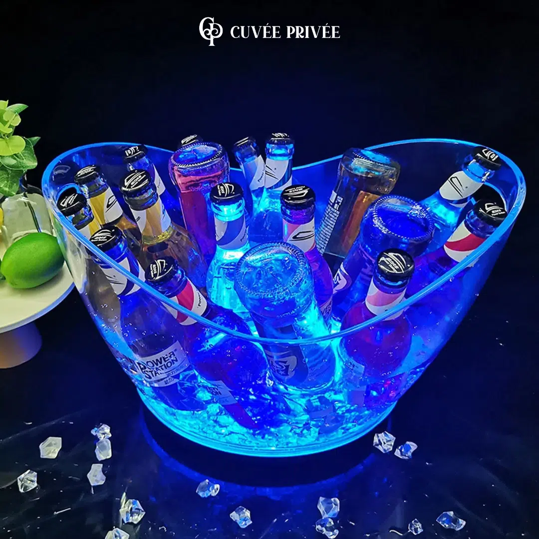 Pensé pour transformer instantanément l’atmosphère de vos réceptions, ce seau à glaçons LED allie fonctionnalité et effet visuel spectaculaire. Sa transparence met en valeur les glaçons et les bouteilles, tandis que l’éclairage multi-couleurs (Rouge,Orange,Vert,Bleu,Bleu,Jaune) sélectionnable crée une ambiance sur mesure, du plus chic au plus festif.