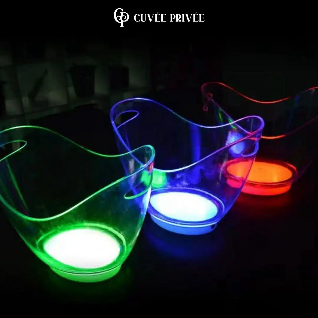 Ce seau à glaçons LED de 8 litres est l’accessoire idéal pour créer une ambiance festive et spectaculaire lors de vos réceptions.