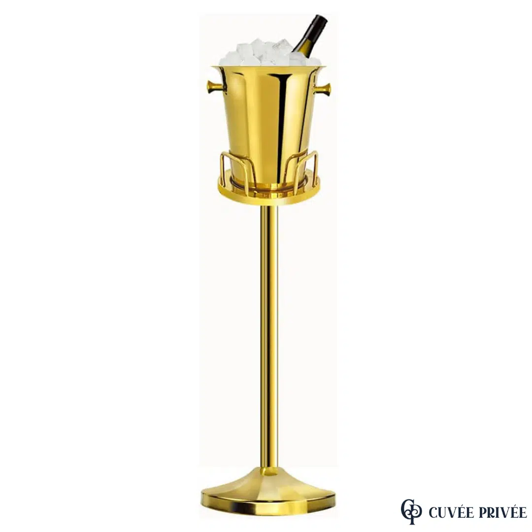 Seau à Glace sur Pied Doré en Acier Inoxydable– Présentation Champagne & Vins