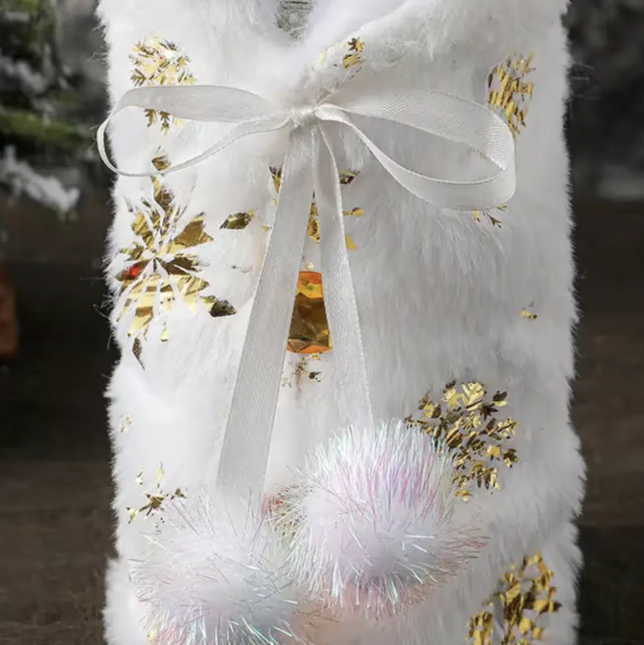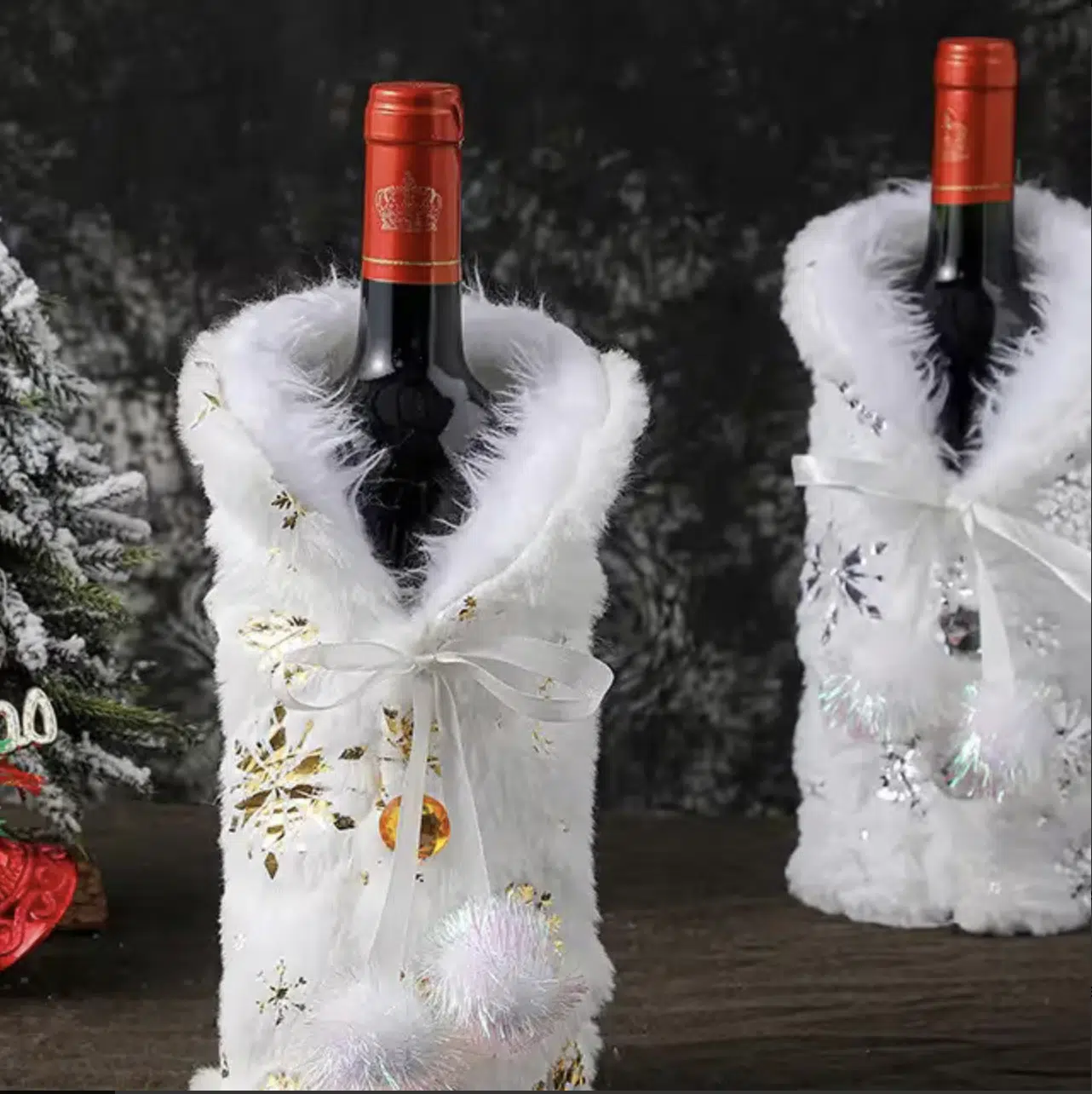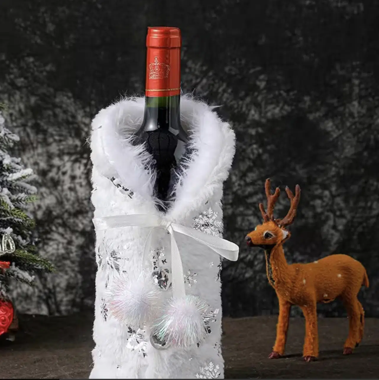 Ce set de deux habillages de bouteilles apporte l’esprit des fêtes directement à votre table. Conçus comme de véritables petits cols décoratifs, ils enveloppent élégamment vos bouteilles de vin ou de champagne pour leur donner une allure chaleureuse, raffinée et parfaitement dans le thème de Noël.